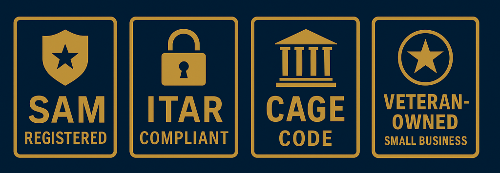 We are proud to maintain active registration and compliance across all key U.S. government systems that enable our participation in federal and allied defense programs.